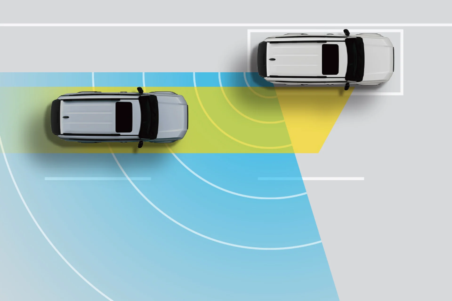RCTA detects vehicles approaching from either side when backing out of a parking space. It alerts the driver with a sound and a flashing mirror indicator.